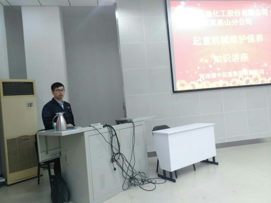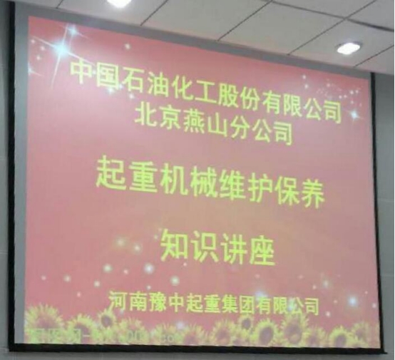 由北京燕山分公司组织的燕山石化机电类特种设备制度宣贯培训班于9月26日在燕山石化培训中心进行,此次培训北京燕山分公司特邀豫中集团副总经理的赵总、殷工针对起重机械的认识、特种设备的法律法规和起重机械的维修保养几个方面进行着重的讲解。